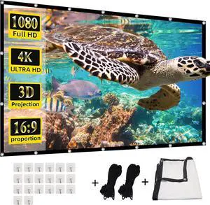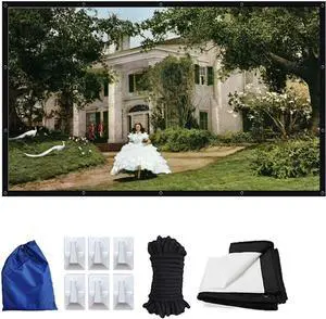 120 inch Portable Outdoor Projector Screen with Stand and Carry Bag, 16:9 Format, 4K HD, Wrinkle-Free, Foldable Design & Easy to Setup