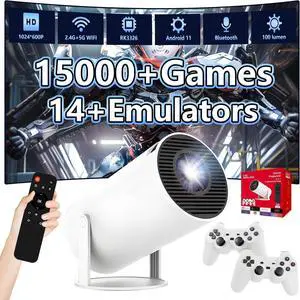 M300 Pro Portable Smart Projector with WIFI & Bluetooth,15000+ Games,14 emulators,Android 11,RK3326,1024*600P GAME projectors,100 Lumen,with 2 Wireless Controllers,Home Theater & Outdoor (Red Box)