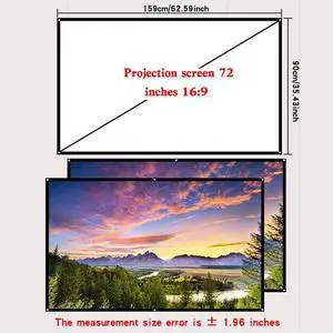 Projector Screen Foldable Projector Screen 16:9 Ratio Hight-Density Portable Foldable Projection Screen 1080P 3D 4K HD Projector Movie 60 72 84 92 100 120 150A-72 inch