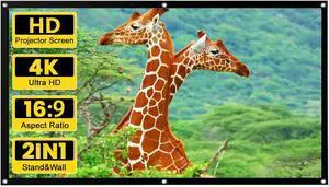 60 in Projector Screen with-Stand, Portable 16:9 4K HD Roll-up Wrinkle-Free Lightweight Movie Screen, for Indoor Outdoor Cinema, Backyard Party