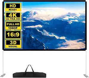Portable Projector Screen with Stand, 84/100" 4K HD 16:9 Outdoor Projection Screen with Carry Bag for Home Theater Backyard Cinema, Foldable Anti Crease(100 inch)