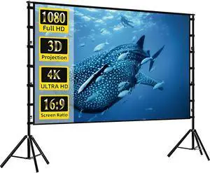 Projector Screen with Stand 100/120 inch Portable Projection Screen 16:9 4K HD Front Rear Projection with Carry Bag for Indoor Outdoor Home Theater(100 inch)