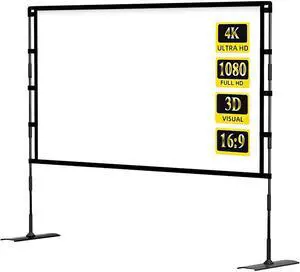 Outdoor Projector Screen with Stand 100/120 inch Portable Projection Screen Indoor Outdoor 16:9 4K HD with Carry Bag for Home Theater(100 inch)