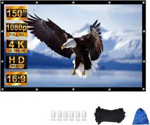 150 in Portable Foldable Projector Screen, 16:9 4K HD Anti-Crease Lightweight Indoor Outdoor Movie Screen for Outside Theater Home Backyard Movies