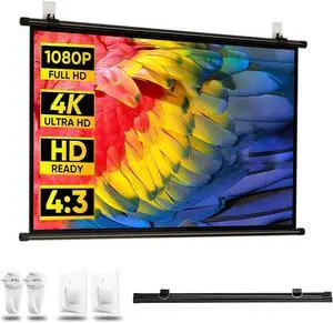 60 in Portable Pull Down Projector Screen, 16:9/4:3 4K HD Roll-Down Projector Movies Screens, for Camping Party, Home Theater, Office(60in/4:3)