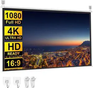 60/84 Inch Projector Screen, 16:9 4K HD Portable Projector Movies Screens, Pull Down Anti-Crease, for Home Theater, Backyard Movie Night(60in/16:9)