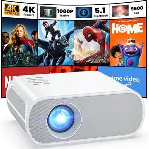 Projector, Native 1080P Full HD Bluetooth Projector with Speaker, 9500 Lumens Outdoor Portable Movie Mini Projector Compatible with Laptop, Smartphone, TV Stick, Xbox, PS5