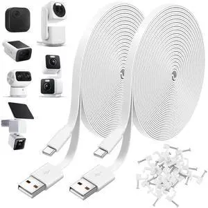 Uogw Type C Cable for WYZE Duo Cam Pan,WYZE Cam Pan v4,Petcube Cam Indoor/Petcube Cam 360/TP-Link Tapo C120,Blink mini2,Blink Outdoor 4,USB to Type C Power Cord,10Ft Flat Power Extension Cable-2Pack