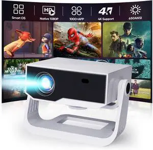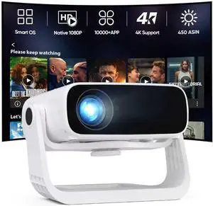 Smart Projector with WiFi and Bluetooth Built-in 10000+ Apps - 450 ANSI 4K Support Mini Movie Projector Native 1080P with 120° Rotation, Auto Keystone & Zoom 2025 New Portable Bedroom Proyector