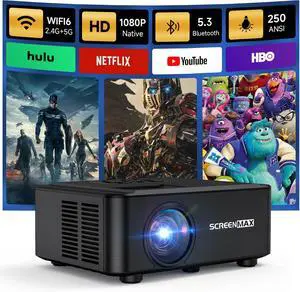 Projector with WiFi and Bluetooth, Screen | Native 1080P, Portable Outdoor 5G Projector, Lag-Free, Compatible with iPhone, Android, PC, Fire Stick, Xbox, and PS5