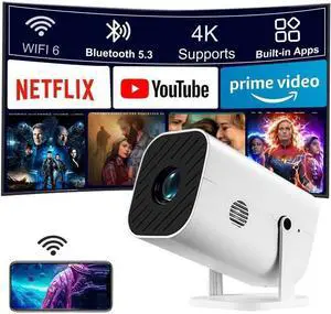 [Compatible with Netflix/4K Support/Compact] Smart Projector with WiFi6 and Bluetooth, Outdoor Movie Projector, Built-in Apps w/ YouTube&PrimeVideo, DoIby Audio, AI Auto Focus, Portable Home Proyector