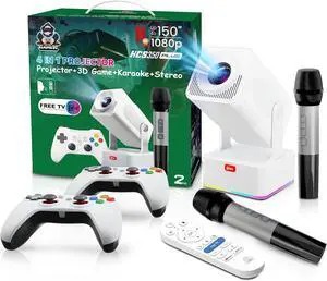 HCS350PLUS 4 IN 1 PROJECTOR - Home Theater Projector with 3D Game Support, Karaoke System2 Wireless Controllers,Built-in Stereo SpeakersPortable Outdoor/Indoor Entertainment SystemGreen