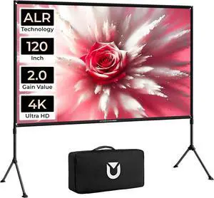 ULTIMEA Outdoor Projector Screen with Stand, 120 inch Anti-Glare Portable Projector Screen, Foldable Indoor Projection Screens 16:9 4K Full HD Movie Screen with Carry Bag for Home Theater