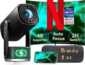 Smart WiFi Mini Projector 3D 4K DLP Projector 8000mAh Battery Supply with Tripod for Home Theater Outdoor Movie