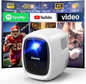 Mini Projector with WiFi 6.0 and Bluetooth 5.4,Portable Projector 4K 1080P HD Support, Movie Projector for Home Outdoor Play, Smart Proyector for Android/iOS/Windows/TV Stick/HDMI/USB, White