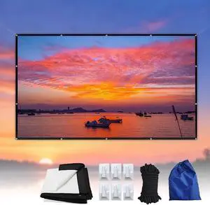 100'' 120'' 150'' 180'' Foldable Projector Screen Utdoor Movie Screen 16:9 Double-Sided Projection with Carry Bag for Camping Backyard Home Theater(150inch (16:9))