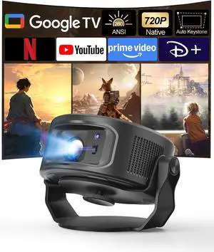 Smart 4K Projector for Bedroom, Indoor Outdoor Home Theater Projectors with WiFi, Bluetooth, NFC, Wireless Airplay Mirroring, Google TV, Dolby, HDMI ARC for Movie Night, Gaming, Halloween, Holiday