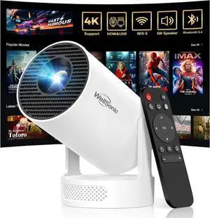 Mini Projector with Wifi and Bluetooth, 4K Portable Projector with 5W Speaker, Auto Vertical Keystone&180°Rotatable, 200Ansi Moive Proyector for Outdoor Bedroom