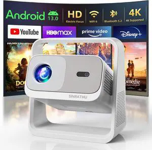 Smart Projector with Netflix, Android 13, WiFi 6, Bluetooth 5.2, 4K Support, Dolby Audio, Auto Focus 1080P Portable Home Theater for Movies, Gaming, Outdoor Use