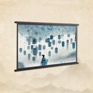 100" Projector Screen Pull Down, Projector Screen with Stand, Outdoor Projection Screen, 16:9 4K HD Home Theater Projection Screen Portable, Wrinkle-Free