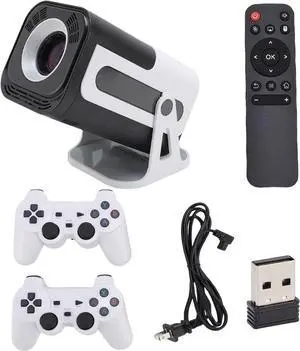 4K Game Projector with Dual Band WiFi and Bluetooth, 2 Gamepads Included Portable Android 13 Projector 180 Degree Rotatable Bracket 64 G Storage