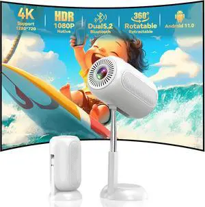 Mini Portable Projector, Support 4K 1080P with Dual-Band WIFI6 5G Wireless 5.0 Bluetooth Android 11,160 ANSI,180° Rotatable, Auto Keystone Correction, 35"-130" Screen Video Projector