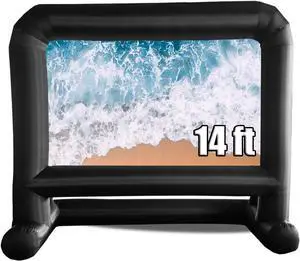 Inflatable Projector Screen, 14FT Portable Blow Up Projector Screen, Front & Rear Projection, with Rope, Air Blower, Ground Nails and Carry Bag, for Football, Backyard, Theater