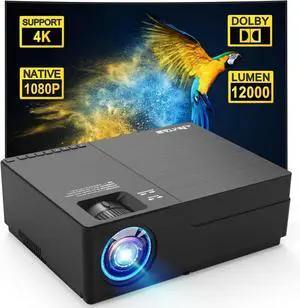 JIMTAB 2025 High Performance 1080P Video Projector, M18 PRO Upgrade 21000 Lux 5G WiFi HD Projector Support AV, VGA, USB, HDMI, Compatible with TV, TVbox, PS, Xbox, Laptop, iPhone and Android- Cabinet Color: Black