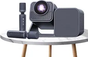3-in-1 Portable Karaoke Mini Projector with 2*15W Speakers & 2 Microphones,180°Rotatable Smart Projector with WIFI & Bluetooth, 30-150 Projection Size,Home Theater,for Inside and Outside (Navy Blue)