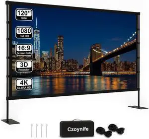 Projector Screen with Stand - 120inch Outdoor Projector Screen Portable, 16:9 Indoor Movie Screen, 4K HD, 3D Compatible Includes Carry Bag