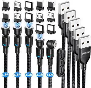ODDADD 100W USB C Magnetic Charging Cable 2pack(3.3ft+6ft), 6 in 1 Magnetic Fast Charging Cable, Magnetic USB C Charging Cable Compatible with Micro USB, Type C and All Devices
