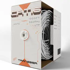 CAT6 1000ft Ethernet Cable Solid UTP Up to 10Gbps 550Mhz 23AWG 4x2 Pair Bulk Cable Network PoE++/4PPoE LAN Wire 1000-feet Easy Pull Box (White)