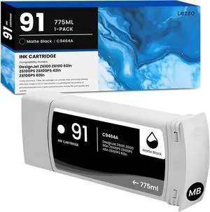 Lezzo 91 C9464A Ink Cartridge 1-Pack 91 C9464A Matte Black Ink Replacement for HP 91 Ink for DesignJet Z6100 Z6100 60in Z6100PS Z6100PS 42in Z6100PS 60in Printer