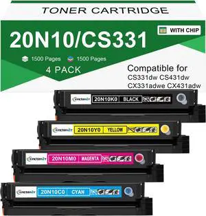 20N10 CS331 CX331 Toner Cartridge Compatible with Lexmark 20N10K0 20N10C0 20N10M0 20N10Y0 (4-Pack with Chip),Works with CS331, CS431, CX331, CX431, CS331dw, CS431dw, CX331adwe, CX431adw Printer