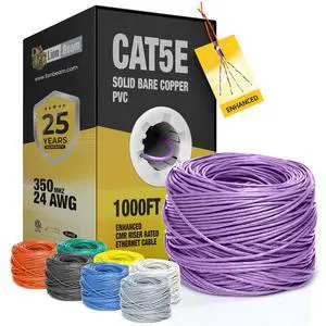 LION BEAM Cat5e Ethernet Cable 1000FT Pull-Box, 24AWG, CMR Insulated Solid Bare Copper Internet Cable 350 MHz, Provides High-Speed 1-5Gbps, UTP Bulk Ethernet Riser Wire with Smooth Fast Reel, Purple