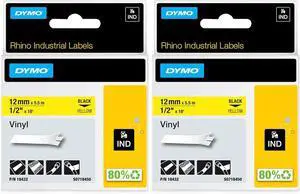 DYMO Industrial Labels for DYMO Industrial Rhino Label Makers, Black on Yellow, 1/2", 2 Count (Pack of 2), 36864 Labels