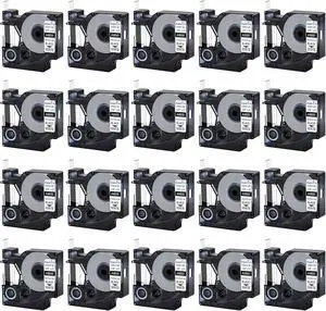 SuperInk 20PK Replacement Label Tape Compatible for Dymo Rhino 18051 6mm 1/4'' x 5' 1.5m Black on White Industrial Wire Cable Heat Shrink Tubes use in DYMO Rhino 3000 4200 5000 5200 6000 Label Maker