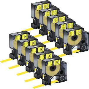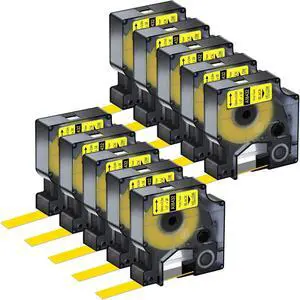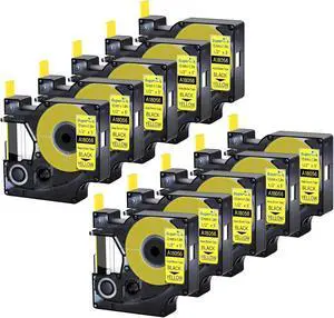 10 Pack Compatible for Dymo Rhino 18432 1/2" 12mm Black on Yellow Vinyl Permanent Industrial Label Tape for Rhino 1000 3000 4200 5000 5200 6000 and 3M Label Maker