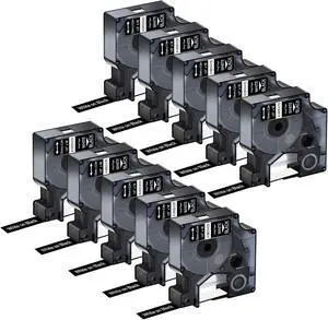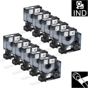 10 Pack Compatible for Dymo Rhino Pro IND Vinyl Label Tape 18445 3/4" 19mm Black on White Label for Rhino 4200 5000 5200 6000 and 3M Label Maker Tape