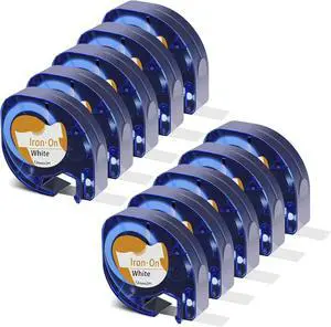 10PK Compatible for Dymo LetraTag Refills 18771 White Iron-on Clothing Label 12mm x 2m (1/2" x 6.5ft) for Letra Tag 200B LT100H LT100T QX50 Label Maker Black on White Fabric Clothes Tape