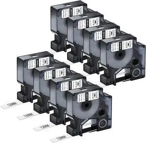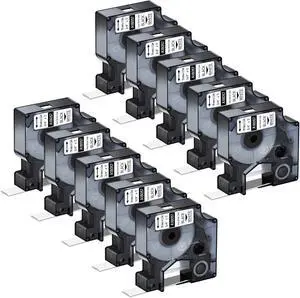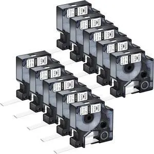10 Pack Compatible for Dymo Rhino 18444 1/2" 12mm Black on White Vinyl Permanent Industrial Label Tape for Rhino 1000 3000 4200 5000 5200 6000 and 3M Label Maker