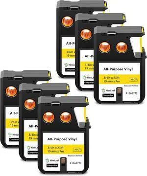 NineLeaf 6 Pack Compatible for Dymo Rhino XTL 1868772 19mm 3/4 inch Label Maker Tape Black on Yellow All-Purpose Vinyl Labels for Rhino XTL-300 XTL-500 Label Printer
