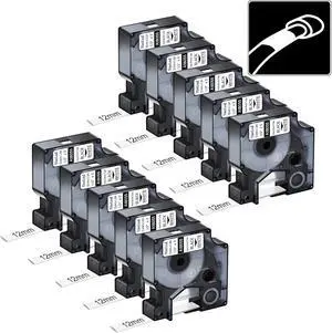 SuperInk 10 Pack Label Tape Compatible for Dymo 18488 Black on White 1/2'' 12mm x 11.5ft 3.5m Industrial Flexible Nylon Wires Tapes Work in Rhino 1000 3000 4200 5200 6000 3M PL200 PL300 Label Maker