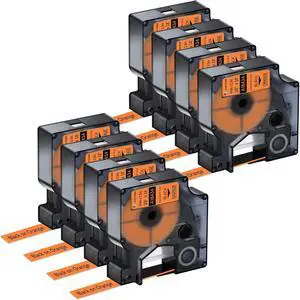 8 Pack Compatible for Dymo Rhino 18434 3/8" 9mm Black on Orange Vinyl Permanent Industrial Label Tape for Rhino 1000 3000 4200 5000 5200 6000 and 3M Label Maker