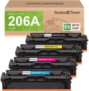206A Toner Cartridges 4 Pack High Yield with Chip Compatible Replacement for HP 206 A 206X HP206X HP206A for Color LaserJet Pro MFP M283fdw M283cdw M283fdn M282nw M255dw M255nw M283 M282 M255 Printer