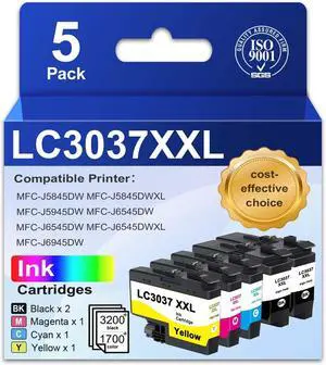 LC3037 LC3037XXL Ink Cartridges (5Pack, 2BK/1C/1M/1Y) Compatible Ink Cartridges High Yield Replacement for Brother LC3037 LC3037XXL with MFC-J5945DW MFC-J5845DW MFC-J5845DWXL MFC-J6545DW Printer
