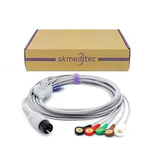11FT 5 Lead Snap AHA Cable with 6 Pins Connector Compatible with AAMI and Most Monitors
