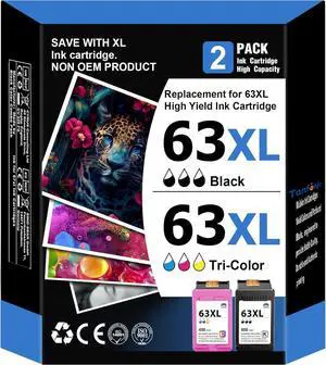 63XL High Yield Ink Cartridges Combo Pack (1 Black/1 Tri-Color 2-Pack) Compatible for HP 63XL 63 Replacement for HP Envy 4510 4511 4512 OfficeJet 3830 3831 3832 Deskjet 1110 1111 2130 Series Printers