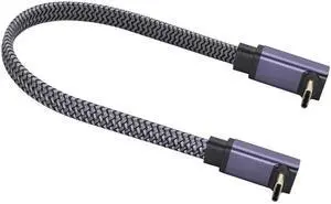 Vszerda Flat Braided 3A&10Gbps USB3.1 Type C Extension Cable Up&Down Angle Type C 3.1 USB Male to 90 Degree USB C Male 4K@60hz AV Monitor Short Cord for Laptop Phone(Dual UP/M/M-0.3M)