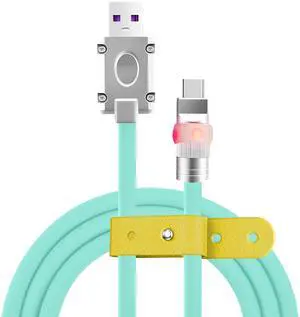 chubbycable Neon Chubby 100W Fast Charging Cable Durable Ultra-Thick Silicone USB C Cable LED Light Up Phone Charger Cord Compatible with iPhone 17-15 Series, Light Blue, USB A to Type-C, 6.6FT